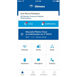 Gestión del alumnado, ausencias, seguimiento, etc... También gestiona la agenda del profesorado y la mensajería y avisos Séneca.