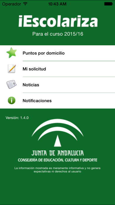 Descripción Consulta de centros y puntos para el proceso de escolarización de los centros sostenidos con fondos públicos de Andalucía. Autor Consejería de Desarrollo Educativo y Formación Profesional - Junta de Andalucía Fecha de publicación 20/12/2016 Precio Gratuita Fuente Consejería de Desarrollo Educativo y Formación Profesional - Junta de Andalucía Enlace a las aplicaciones Descarga la aplicación desde la Play Store de Google Descarga la aplicación desde la App Store de Apple Cuerpo Consulta de centros y puntos para el proceso de escolarización de los centros sostenidos con fondos públicos de Andalucía. Capturas de pantalla Image Image Imagen de la aplicación Image