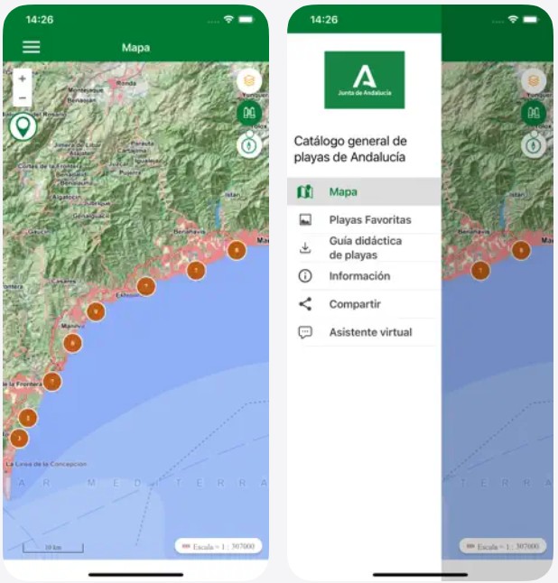 Además dispone de una app para móviles que incluye un asistente conversacional que permite, mediante un lenguaje coloquial y natural en modo texto, realizar consultas del ámbito propio de las playas de Andalucía.