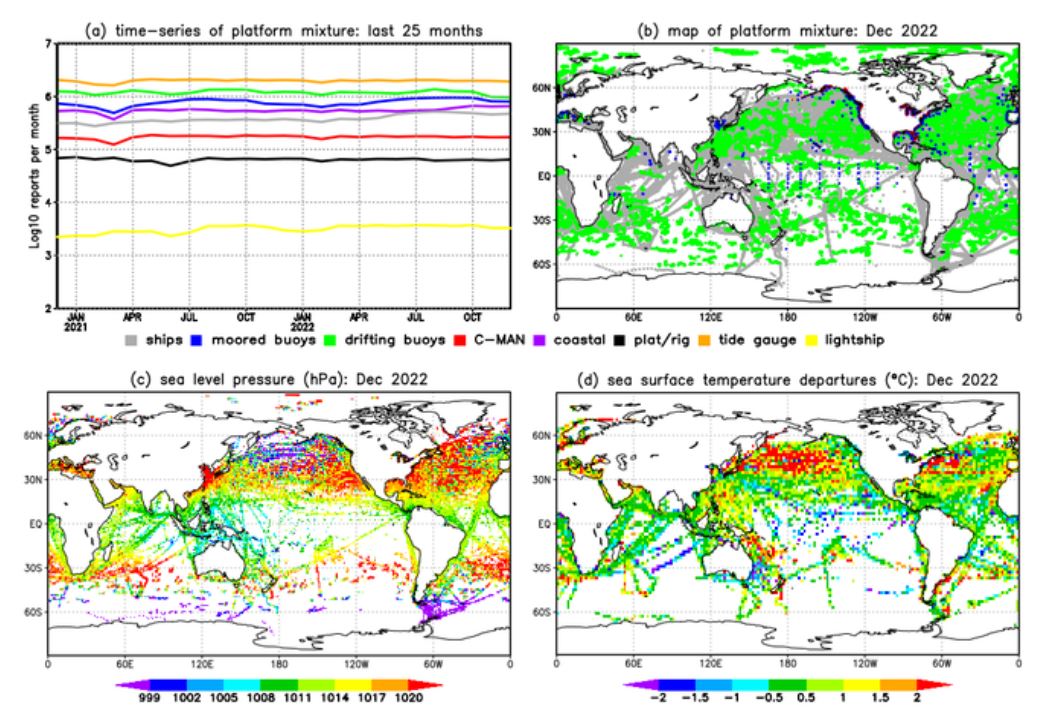 - El análisis de temperatura de la superficie global del océano terrestre fusionado de la National Oceanic and Atmospheric Administration (NOAA) combina conjuntos de datos de temperatura de la superficie del mar y de la temperatura de la superficie terrestre a largo plazo para crear una descripción completa y precisa de las tendencias de la temperatura global. El conjunto de datos se utiliza para respaldar las actividades de monitoreo del clima, como la Monthly Global Climate Assessment, y también proporciona datos de entrada para una serie de modelos climáticos