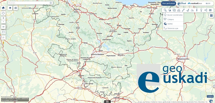 GeoEuskadi es el geoportal de referencia de la Infraestructura de Datos Espaciales de Euskadi y tiene como objetivo principal garantizar la reutilización y el acceso fácil, gratuito y eficaz a la información geográfica de esta Comunidad Autónoma. Está dirigido tanto a usuarios especializados como a cualquier persona u organización pública o privada que tenga la necesidad de consultar mapas o información geográfica de Euskadi. Permite visualizar la cartografía, acceder a múltiple información geográfica de diferentes temáticas y fuentes, así como a las ortofotos de múltiples años. También permite la utilización de diferentes herramientas geográficas, entre otras, para buscar topónimos, calles/portales o parcelas, comparar cartografías, realizar perfiles o dibujar en el territorio.