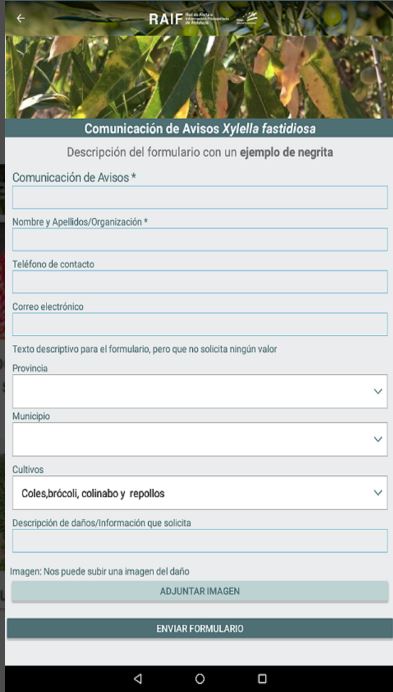 Con la aplicación móvil de la Red de Alerta e Información Fitosanitaria de Andalucía (RAIF) podrá acceder a la información fitosanitaria de los principales cultivos de Andalucía, así como a las alertas, noticias y actualidades relacionadas con la Sanidad Vegetal.