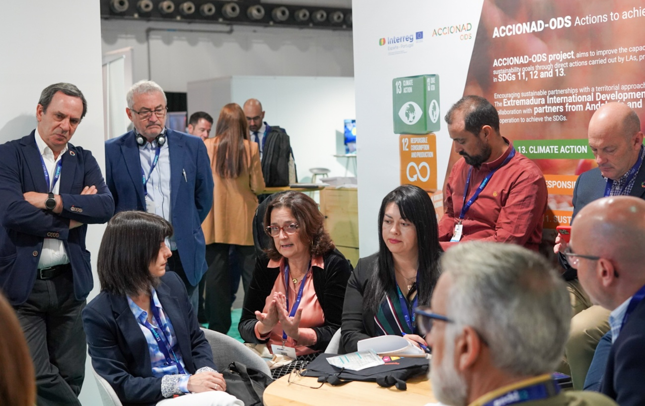 La AACID ha liderado la Delegación del proyecto ACCIONAD-ODS, focalizado sobre todo en la Economía Circular que, con el apoyo de la AEXCID, presentaba un Stand del proyecto en los EDD. La delegación estaba compuesta por representantes de los socios del proyecto así como autoridades de los territorios objeto del proyecto, concretamente representante locales de Bonares (Huelva), Piornal (Cáceres), Almendralejo (Badajoz), Mérida (Badajoz) y representantes regionales de Algarve y Andalucía (Junta de Andalucía). (Ver: Descargar imagen 1)
