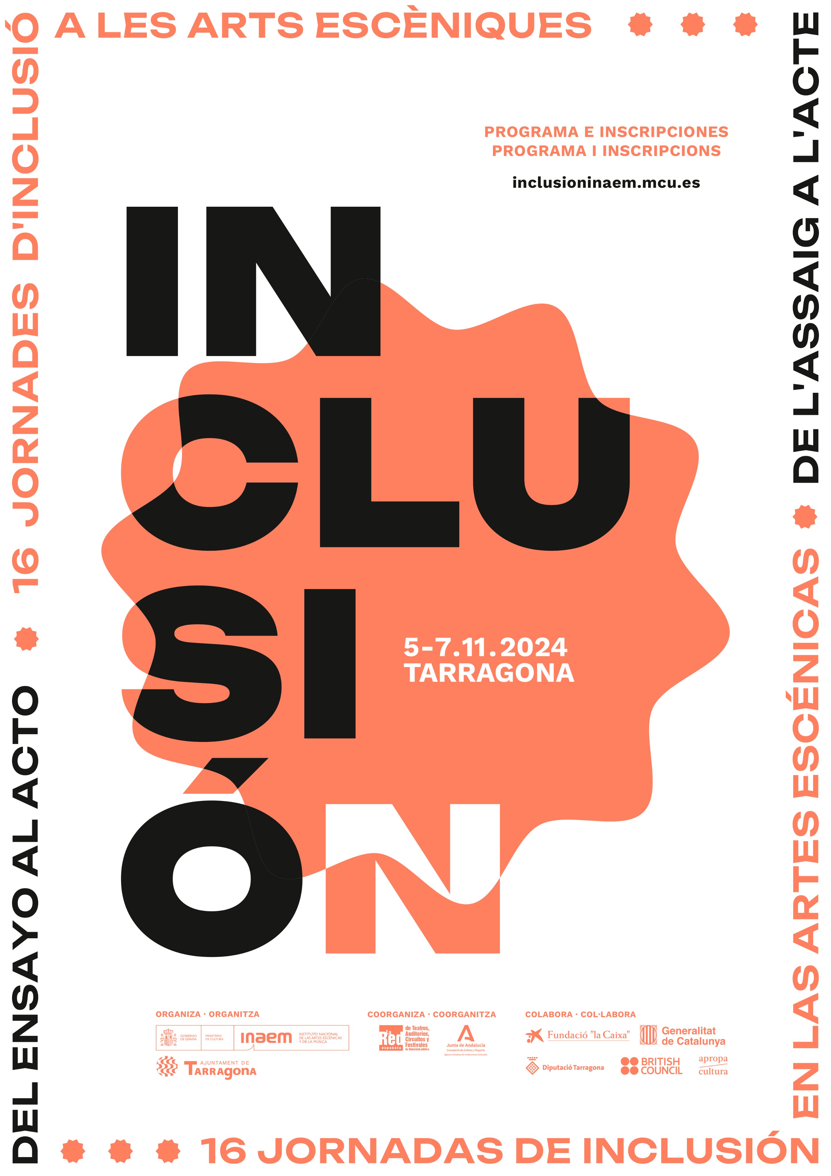 Esta nueva edición de las Jornadas se desarrollará de manera presencial en la Antiga Audiència y el Teatre Tarragona, como sedes principales, y desplegará diferentes actividades en otros espacios de la ciudad, como CaixaForum Tarragona, Casa Canals, Rambla Nova, la residencia La Muntanyeta y el Hospital Santa Tecla. Desde hoy, los asistentes pueden inscribirse a través de la página web inclusioninaem.mcu.es