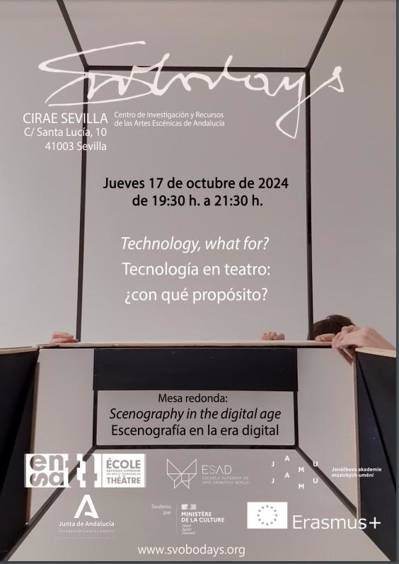 Cuestionar las conexiones entre escenografía, luz y tecnologías avanzadas es el objetivo principal de las jornadas #Svovodays, que en esta edición recalan, por segundo año, en el Centro de Investigación y Recursos de las Artes Escénicas, dependiente de la Agencia Andaluza de Instituciones Culturales de la Consejería de Cultura y Deporte. El encuentro está liderado por la École Nationale Supérieure des Arts et Techniques du Théâtre (ENSATT) de Lyon, Janáčkova Akademie Múzických Umění (JAMU) de Brno y Escuela Superior de Arte Dramático (ESAD) de Sevilla.