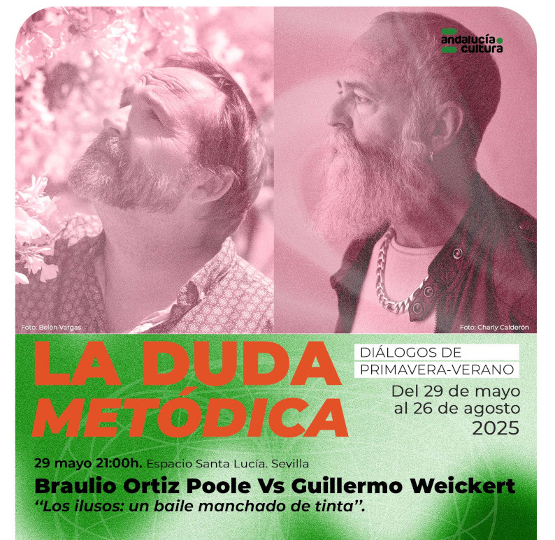 Así, el programa comienza esta semana en la sede de la capital andaluza con una cita entre el coreógrafo Guillermo Weickert y el poeta y periodista Braulio Ortiz Poole. Ambos creadores departirán en una charla que han titulado ‘Los ilusos: un baile manchado de tinta’ en la que compartirán sus miradas sobre la danza, la escritura y el pensamiento. Este mismo encuentro se repetirá en el marco del festival Vildanza, el día 27 de junio, a las 12:30, en la Casa de la Cultura de Vilches (Jaén).
