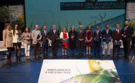 El vicepresidente de la Junta y consejero de la Presidencia y Administración Local, Manuel Jiménez Barrios, y la consejera de Agricultura, Pesca y Desarrollo Rural, Carmen Ortiz, han presidido en Sevilla la entrega de los XI Premios de Andalucía de Agricultura y Pesca, que según ambos consejeros, "son un reflejo de la enorme diversidad del medio rural y pesquero andaluz, de su espíritu emprendedor, creativo e innovador, así como de su apuesta por la sostenibilidad, la diferenciación y calidad".