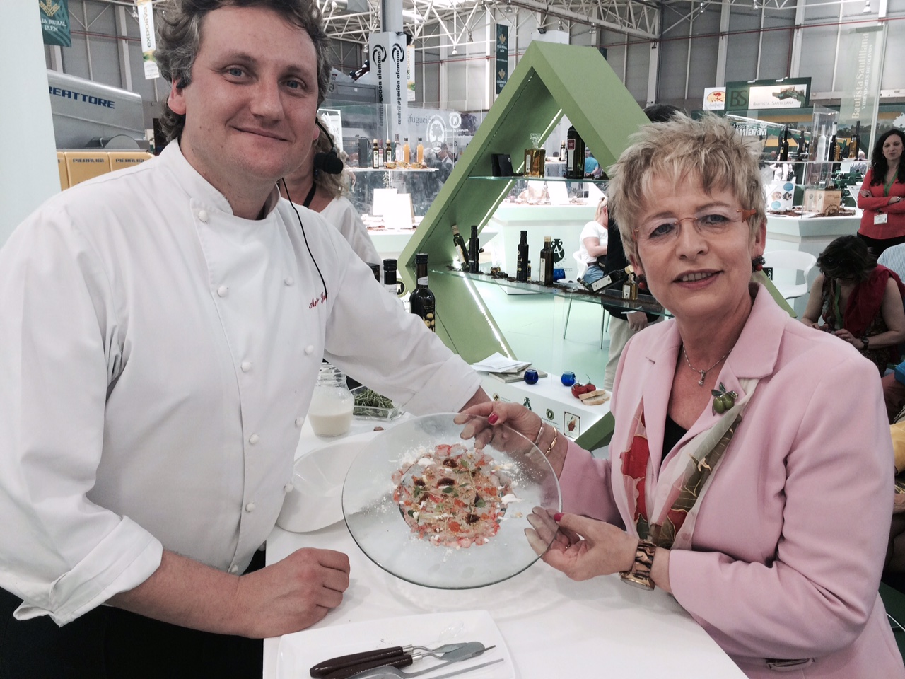 La consejera de Agricultura, Pesca y Desarrollo Rural en funciones, Elena Víboras, ha asistido hoy a una ponencia teórico-práctica (Master Class) centrada en la aportación del aceite de oliva virgen extra a la gastronomía típica del modelo de la Alimentación Mediterránea. Esta actividad se ha desarrollado en el espacio expositivo de la Consejería en la XVII Feria Internacional del Aceite de Oliva e Industrias Afines (Expoliva) que se celebra estos días en Jaén. La Master Class ha abordado también la contribución del reconocimiento de la Dieta Mediterránea como Patrimonio Cultural Inmaterial de la Humanidad por la Unesco a la mejora del reconocimiento y la imagen del sector oleícola por parte de la sociedad.