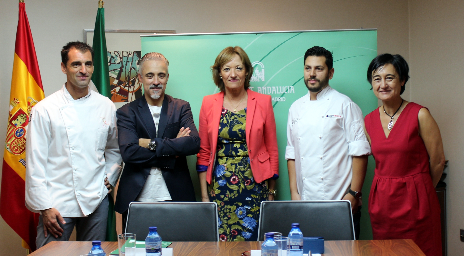 En representación de los chefs que participarán en este Congreso, Carmen Ortiz ha estado acompañada hoy por tres cocineros de renombre: Diego Gallegos (Restaurante Sollo en Benalmádena, Málaga), Julio Fernández (restaurante Abantal, Sevilla) y Sergi Arola (Sergi Arola Restaurante en Madrid). El primero de ellos, conocido como el “Chef del caviar”, destaca por su reinvención de los sabores de la cocina andaluza y por haber sido elegido "Chef revelación" en Madrid Fusión 2015. El trabajo de Julio Fernández en los fogones cuenta con el aval de una estrella Michelin y dos soles Repsol y se caracteriza por ser una cocina andaluza contemporánea basada en productos de calidad que parte de sabores tradicionales a los que este cocinero aplica nuevas técnicas de elaboración. Por su parte, Sergi Arola ofrece en sus platos un concepto 100% mediterráneo y su restaurante se ha consolidado como una referencia social y gastronómica avalado por el prestigio de dos estrellas Michelin.