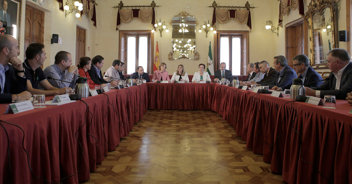 En el encuentro presidido por Susana Díaz han participado la consejera de Agricultura, Pesca y Desarrollo Rural, Carmen Ortiz; integrantes de las Organizaciones Profesionales Agrarias de la provincia (Asaja, COAG y UPA), Cooperativas Agro-alimentarias, la Interprofesional de Frutas y Hortalizas de Andalucía (Hortyfruta), la Federación Andaluza de Empresarios Comercializadores Hortofrutícolas (Ecohal) de Granada, la Confederación Empresarial de la Provincia de Almería (Asempal), la Asociación de Organizaciones de Productores de Frutas y Hortalizas (Aproa), la Asociación de Organizaciones de Productores de Frutas y Hortalizas de Almería (Coexphal) y alhóndigas de esta entidad.
