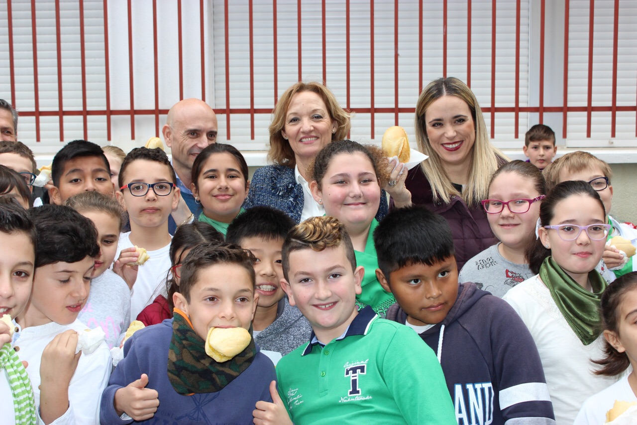 Carmen Ortiz junto a los alumnos del CEIP Ramón Simonet de Málaga durante el desayuno saludable