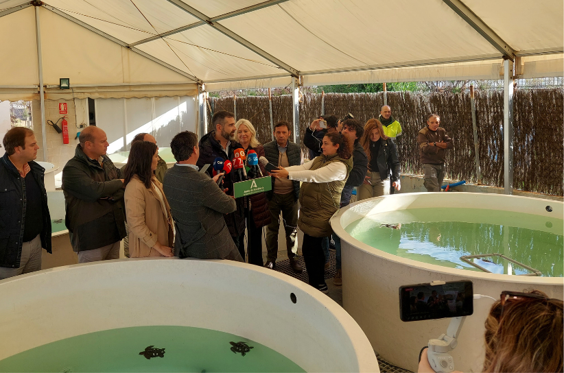El Consejero agradeció el trabajo de los profesionales del centro, reconociendo como positiva la colaboración que se mantiene con diferentes colectivos relacionados con el mar, además destacó las instalaciones como un lugar de referencia para la conservación y el cuidado de la biodiversidad marina en Andalucía.