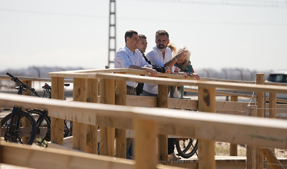 El presidente de la Junta recorrió en bicicleta un tramo de esta ruta acompañado por el alcalde de Cádiz, Bruno García; el consejero de Sostenibilidad, Medio Ambiente y Economía Azul, Ramón Fernández-Pacheco; la delegada del Gobierno de la Junta en Cádiz, Mercedes Colombo, y la presidenta de la Diputación Provincial, Almudena Martínez.