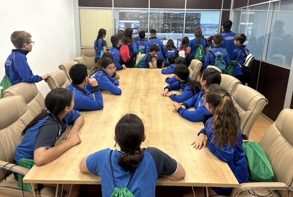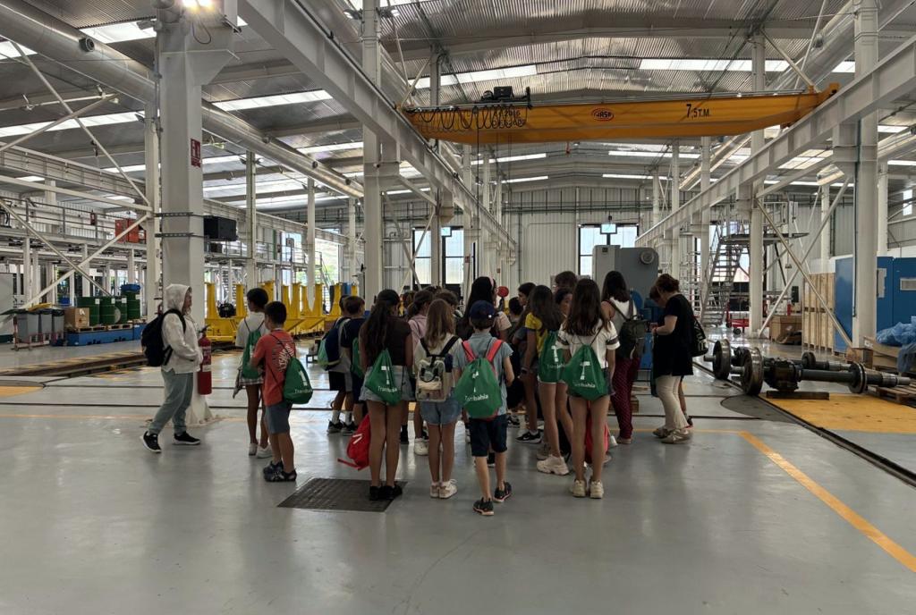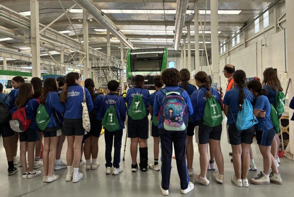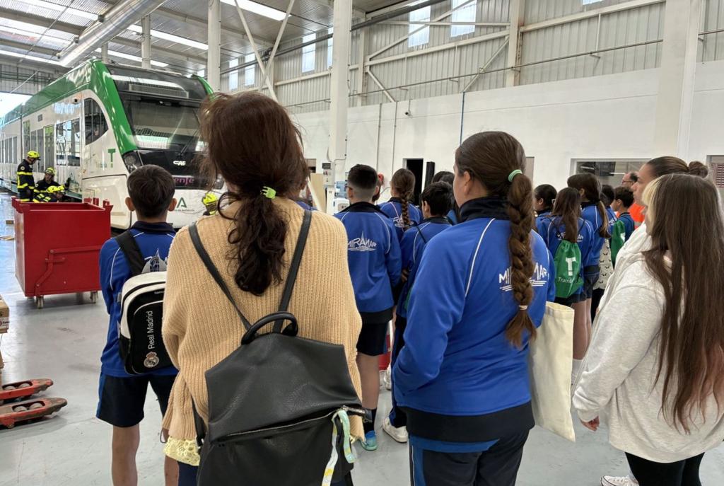 Posteriormente, el grupo se desplaza hasta los talleres y cocheras, donde conocen las particularidades del Trambahía, cómo se hace el mantenimiento de la flota de trenes y reciben nociones básicas de seguridad vial. Por último, la actividad finaliza con la visita al Puesto de Control Central, donde los alumnos observan en tiempo real la gestión del tranvía y se les informa de la labor que desarrollan los distintos perfiles profesionales del personal del Trambahía.