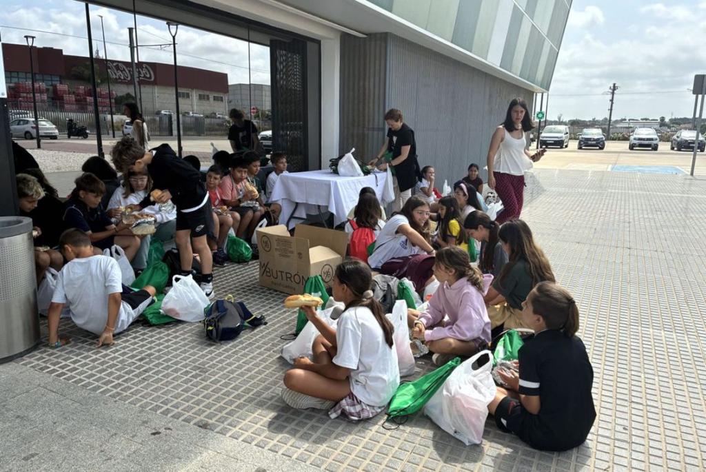 La visita al Trambahía comienza con el trayecto en tranvía, desde la parada más cercana al centro escolar hasta los talleres y cocheras situados en el polígono industrial de Pelagatos de Chiclana. Los escolares reciben explicaciones sobre las medidas de accesibilidad en paradas y estaciones, el funcionamiento de las máquinas expendedoras de billetes y las validadoras o tornos de acceso. Esta primera parte de la visita está orientada a cómo usar el transporte público y las normas básicas de convivencia.