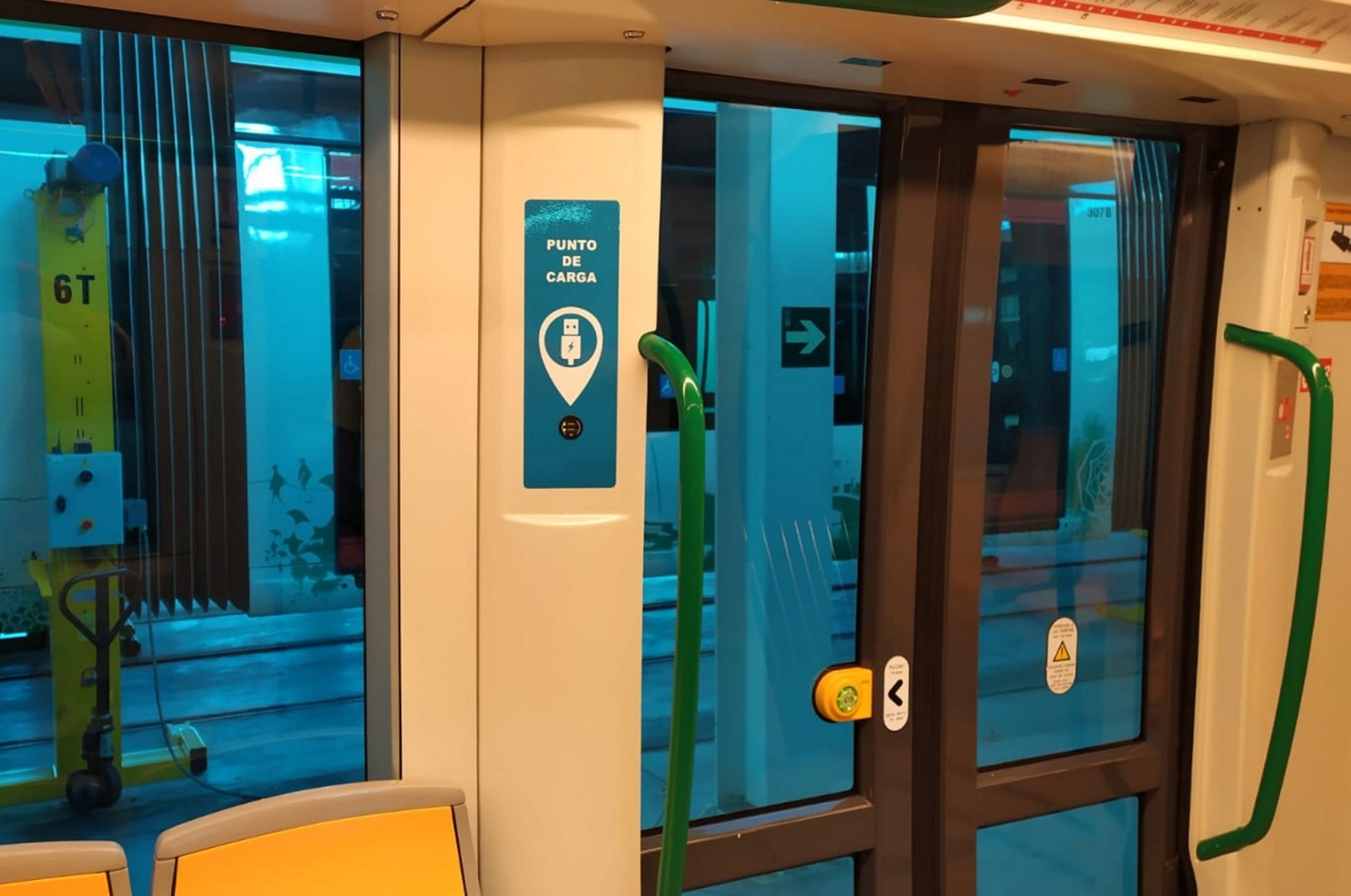 Metro de Granada instala puntos de carga para móviles en el interior de los trenes