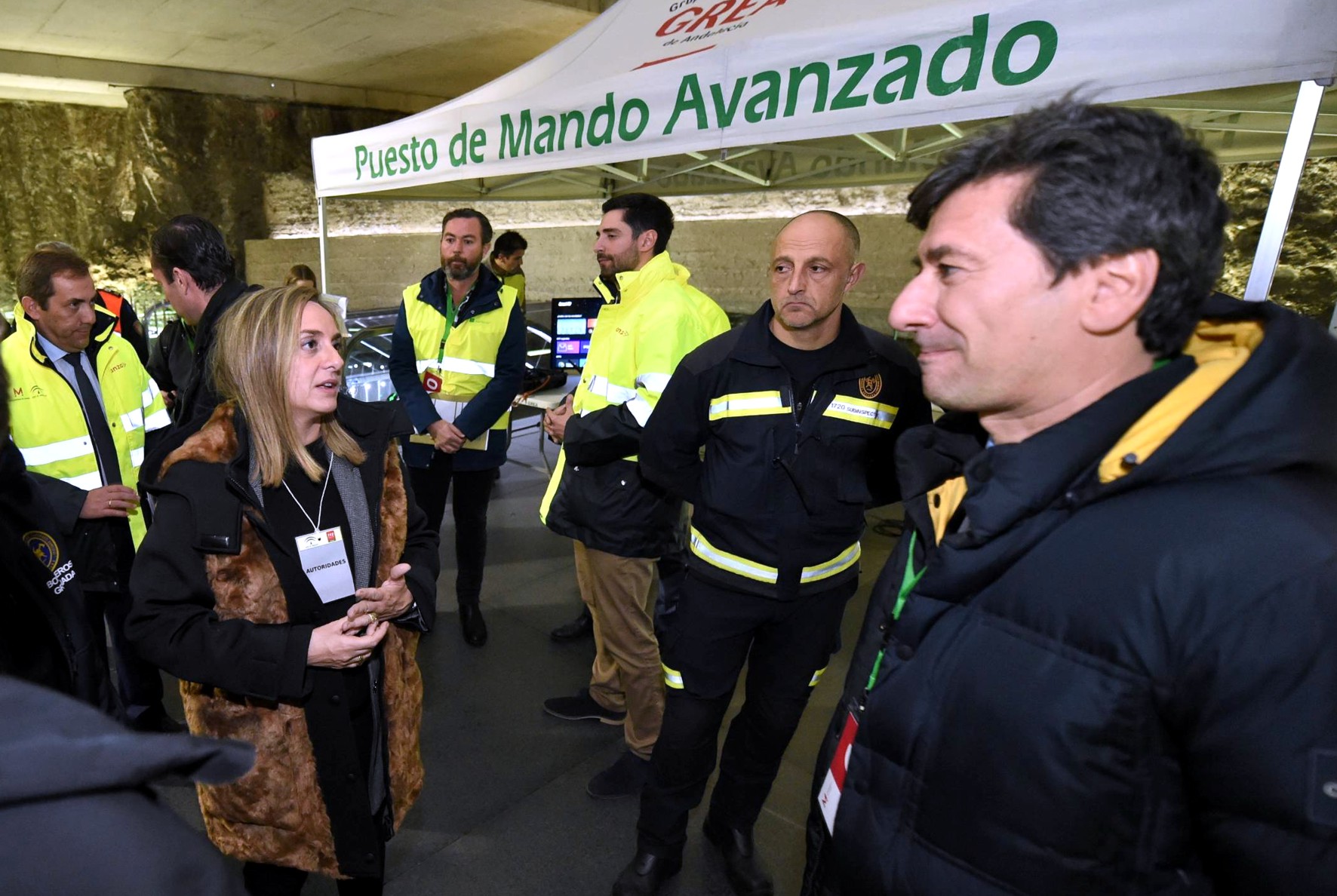 La consejera asiste a la simulación del incendio en el túnel del metro de Granada.