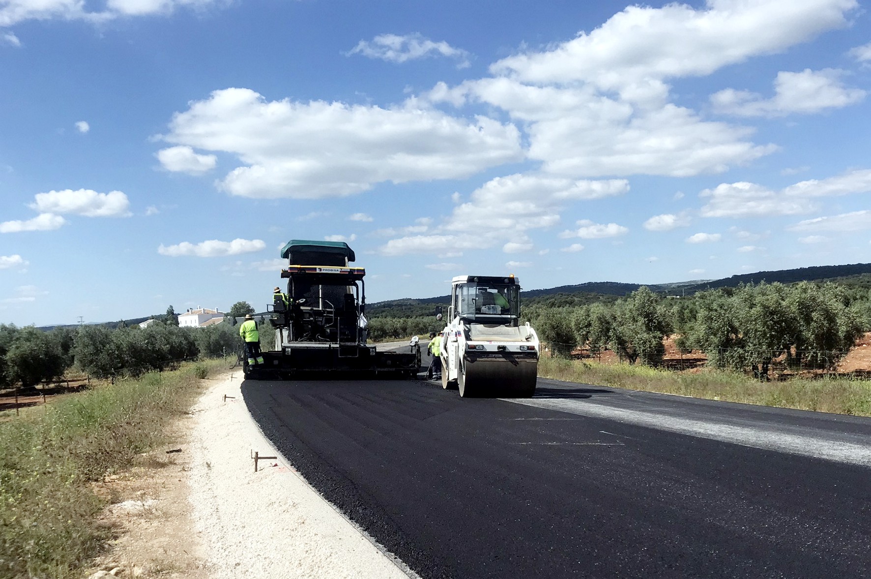 Las obras de construcción de la Variante Este de Arriate (Málaga), que promueve la Consejería de Fomento, Infraestructuras y Ordenación del Territorio a través de la Agencia de Obra Pública, avanzan con el inicio de los trabajos de extensión de la capa de aglomerado en el camino de Arriate, que conecta la localidad con la nueva variante a la altura de la pedanía de Parchite.