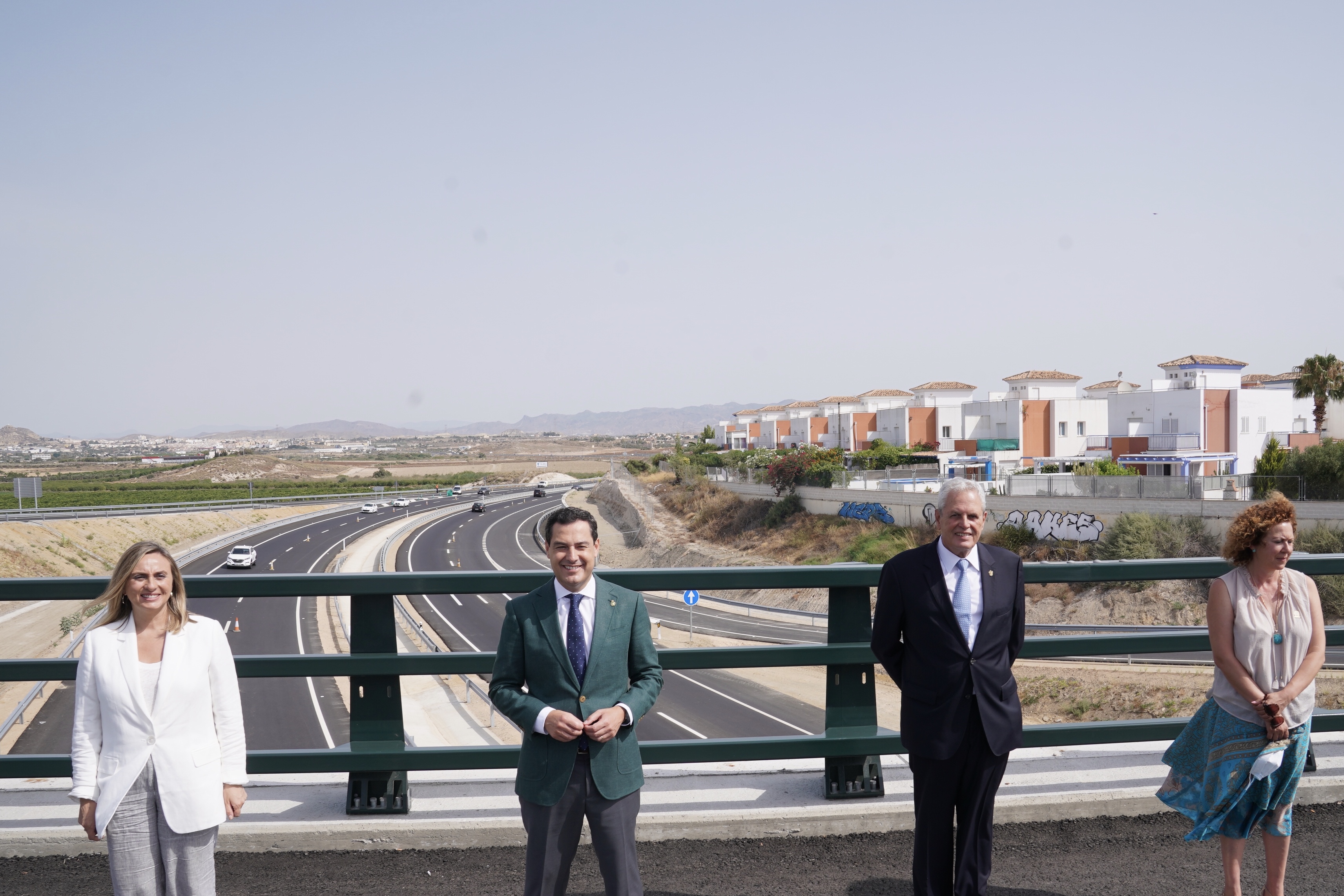 El presidente de la Junta de Andalucía, Juanma Moreno, ha destacado la apuesta y compromiso inquebrantable del Gobierno andaluz con la provincia de Almería y con la mejora de sus infraestructuras, siendo éste un aspecto clave para que esta provincia desarrolle todo su músculo empresarial, logístico e internacionalizador. Un compromiso que queda reflejado con la puesta en marcha de proyectos como es el desdoble de la carretera A-352 Vera-Garrucha o la variante sur de Berja que se han inaugurado hoy.