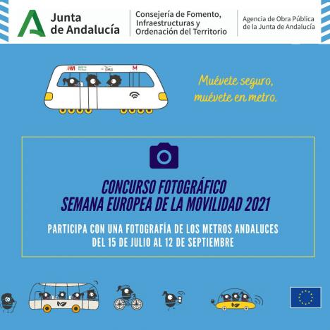 La Consejería de Fomento, Infraestructuras y Ordenación del Territorio, a través de la Agencia de Obra Pública de la Junta de Andalucía, ha convocado un concurso de fotografía para los usuarios de los metros andaluces (Sevilla, Málaga y Granada) bajo el lema ‘Muévete seguro, muévete en metro’. Este certamen busca agraceder la fidelidad de los viajeros de los tres metros y se enmarca dentro de los actos que esta Consejería ha organizado con motivo de la Semana Europea de la Movilidad (16 al 22 de septiembre), que centra este año su campaña en promover la movilidad sostenible, saludable y sobre todo segura bajo el lema Por tu salud, muévete de forma sostenible.