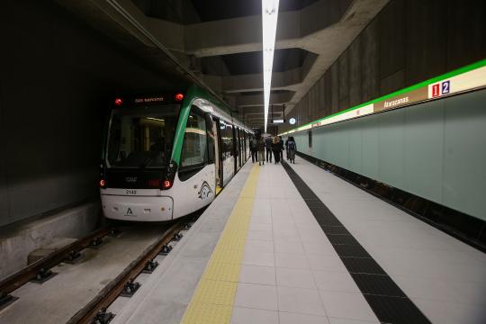 El Metro de Málaga en la estación de Atarazanas.