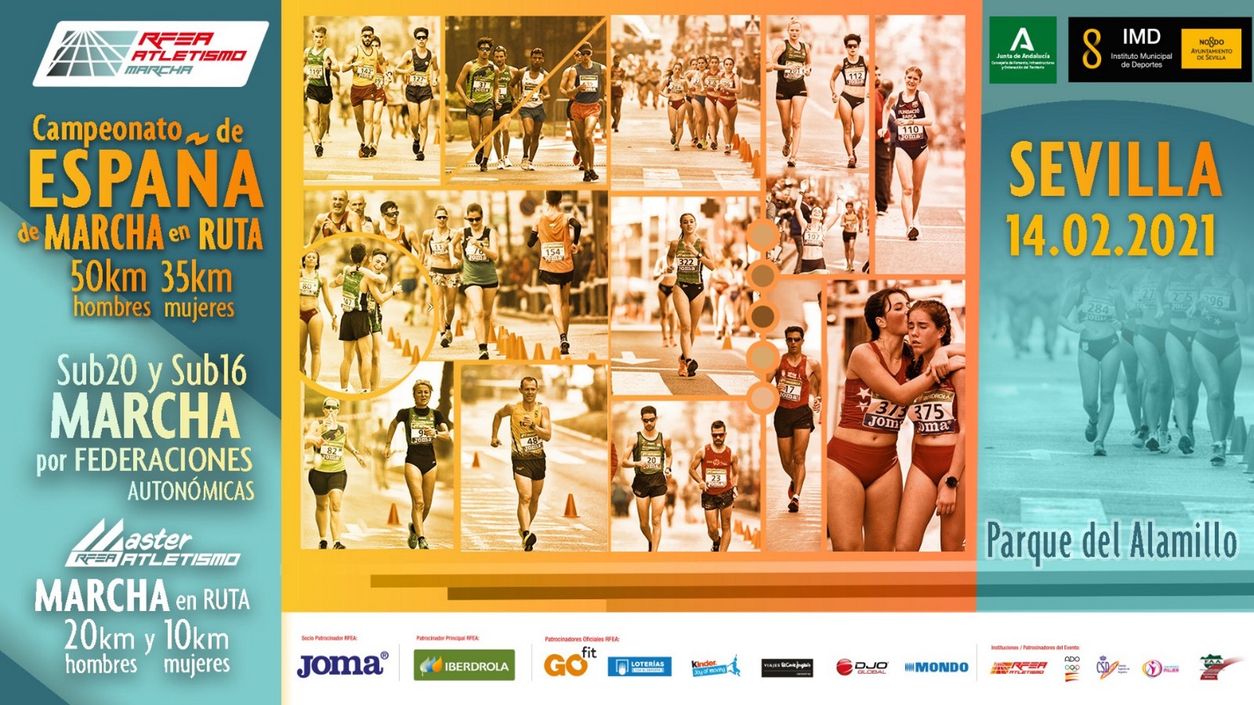 El Parque Metropolitano del Alamillo, en Sevilla, acogerá el próximo domingo, 14 de febrero, el XC Campeonato de España de Marcha en Ruta en sus diferentes categorías, desde Absoluto hasta Sub 16, que se desarrollarán por un circuito trazado por la organización con diferentes distancias, hasta un máximo de 50 kilómetros. Durante la mañana del mismo domingo se correrán también los Campeonatos de Federaciones Autonómicas Sub 20 y Sub 16.
