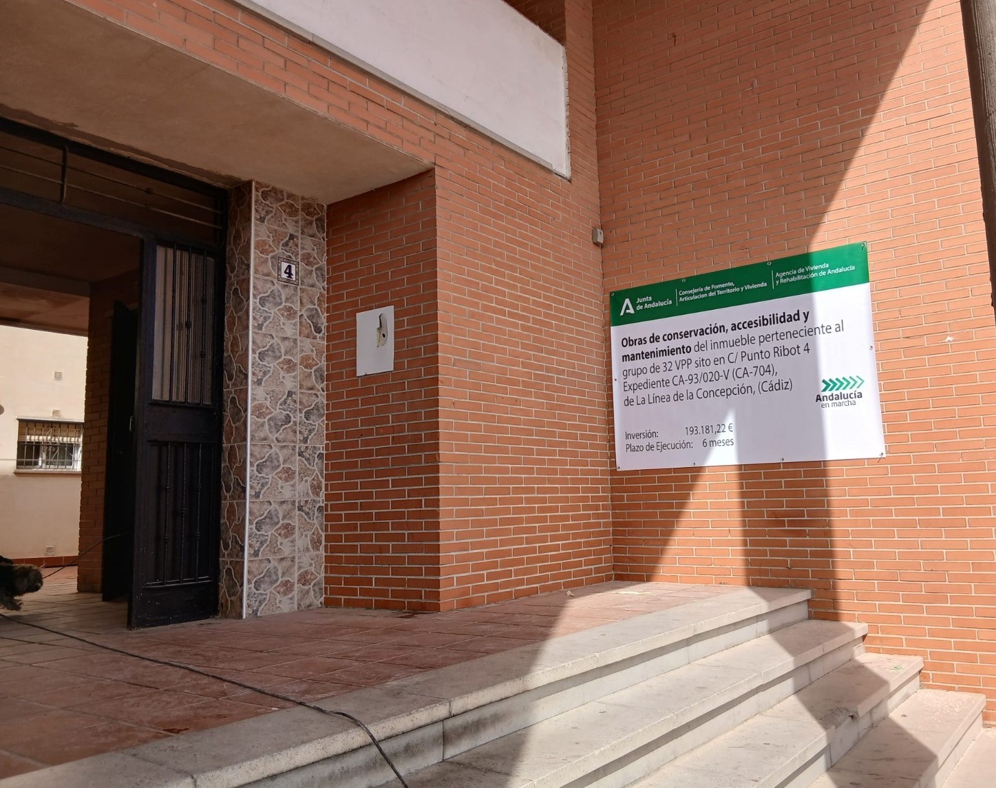 La Consejería de Fomento, Articulación del Territorio y Vivienda, a través de la Agencia de Vivienda y Rehabilitación de Andalucía (AVRA), ha iniciado las obras de reparación, conservación y accesibilidad de 32 viviendas públicas en alquiler situadas en la calle Punto Ribot, número 4, en La Línea de la Concepción. Se trata de un edificio plurifamiliar de planta baja más tres pisos de altura construido en 1995, con 8 viviendas por planta.