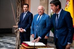 Juan Manuel Moreno Bonilla, presidente del Gobierno andaluz, preside el acto solemne de toma de posesión de Juan Antonio Marín Lozano como nuevo presidente del CES de Andalucía.