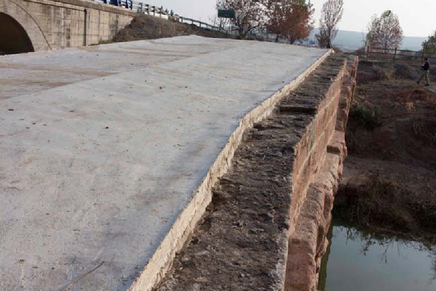 Otro de los trabajos realizados consistió en la retirada de la losa de hormigón situada bajo el arco occidental, por encontrarse fragmentada y presentar riesgo de dañar la estructura del puente. No se realizó, sin embargo, la retirada de la del arco oriental, estable y en perfecto estado.