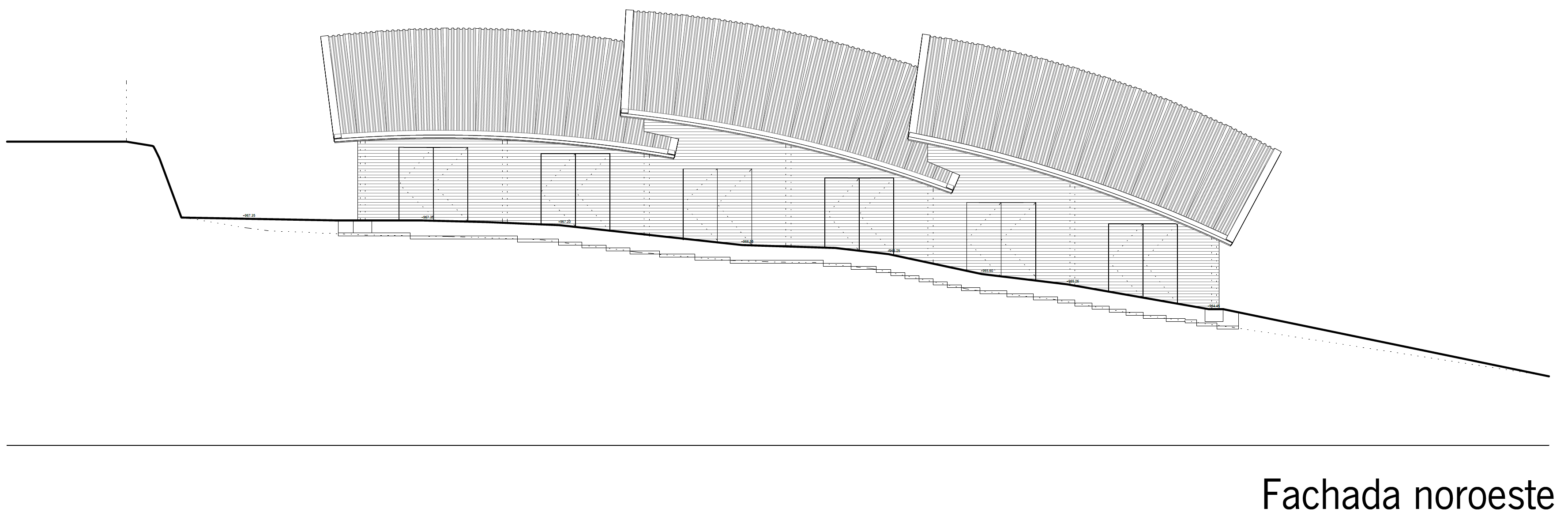 La inclinación de estos paños permite una separación entre ellos en dirección norte para la entrada de luz y ventilación. La terminación es de chapa grecada de acero galvanizado prelacado, elegido también para facilitar su integración. Su color es similar a los tonos terrizos existentes en el entorno del yacimiento.