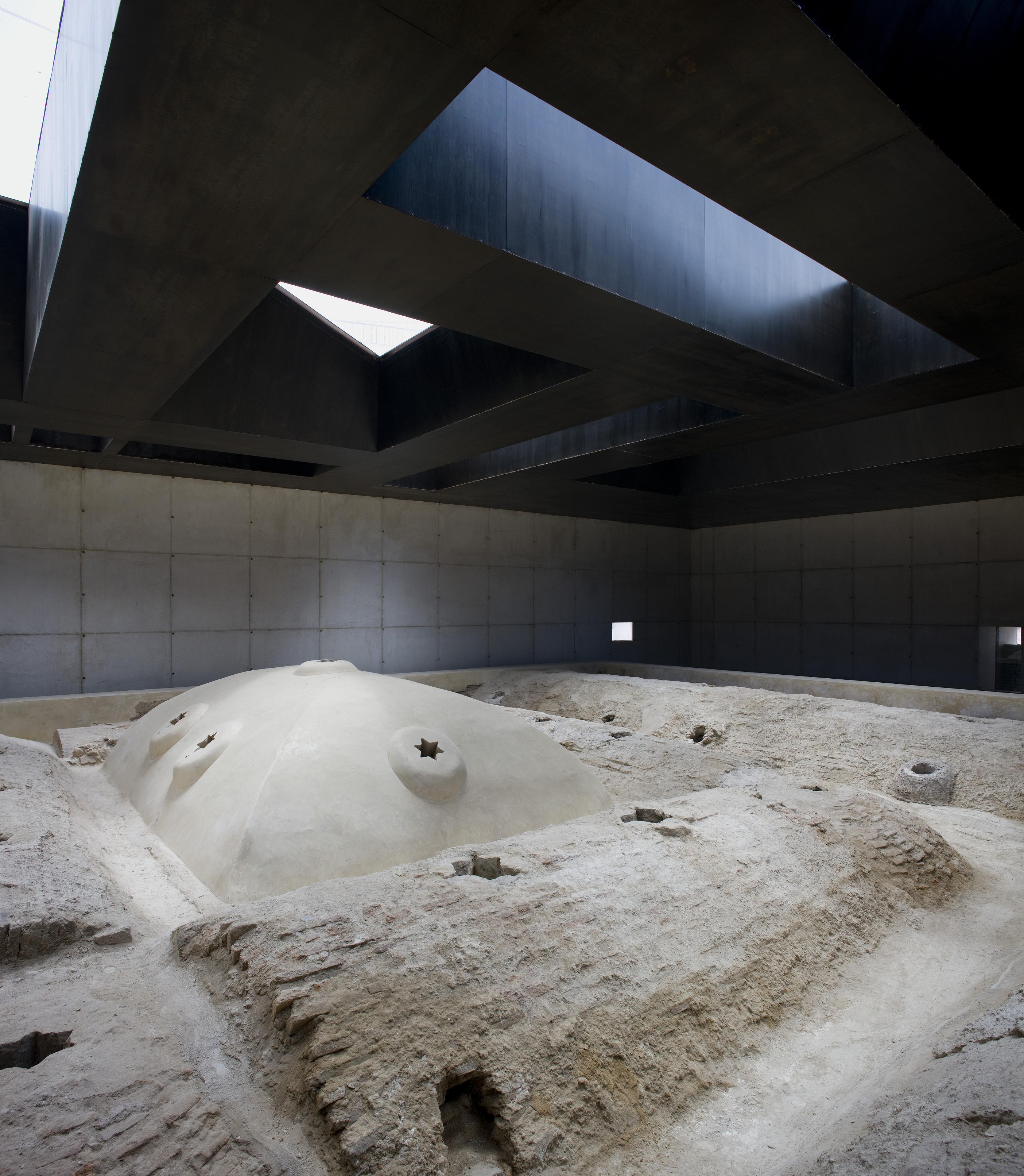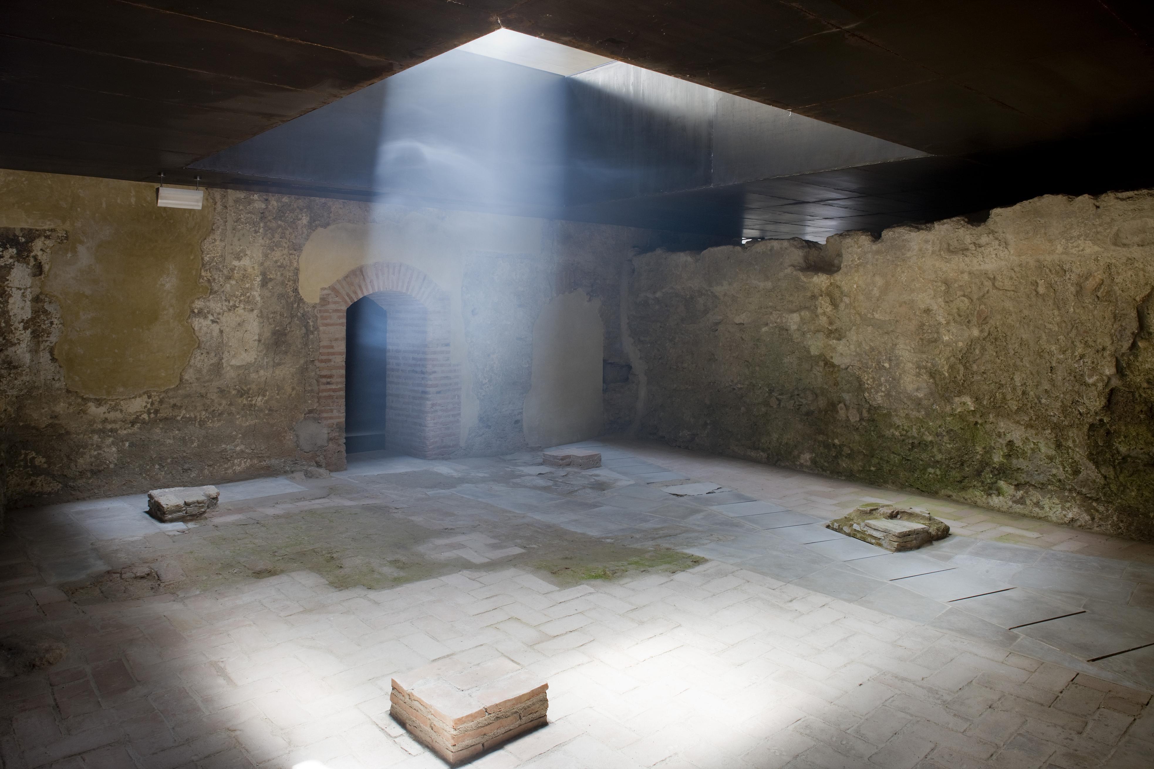 La puesta en valor del conjunto se basa en tres aspectos sustanciales de la arquitectura sobre la que se actúa: la escala, la luz y el agua. Se ha tratado de generar un espacio protagonizado por los restos y el monumento, anticipando la esencia de los baños a través de la luz y la presencia del agua.