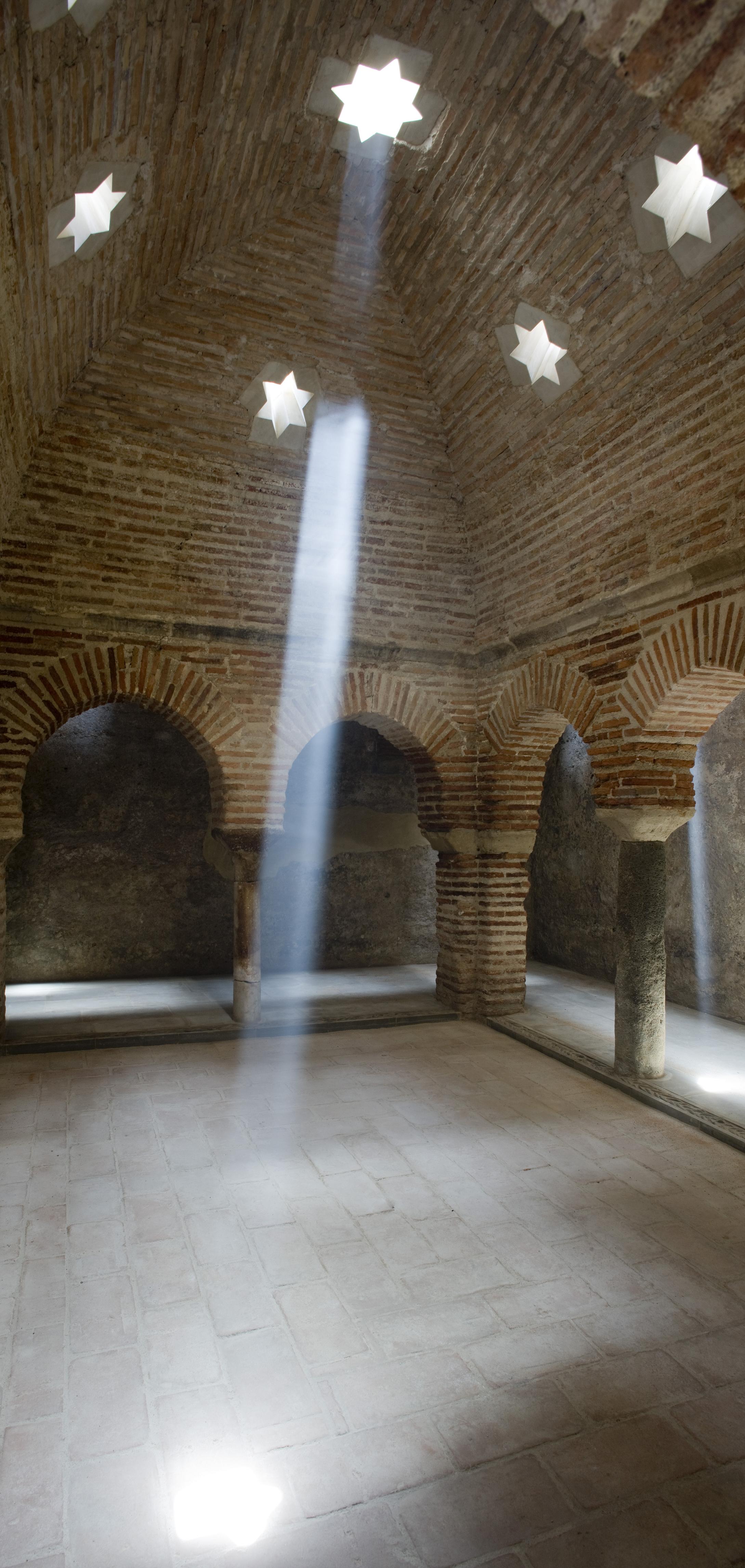 El solar ocupado por los baños corresponde a una manzana completa insertada en una trama propia del original barrio árabe, constituida por estrechas calles, presentando ensanches en el extremo norte y suroeste.