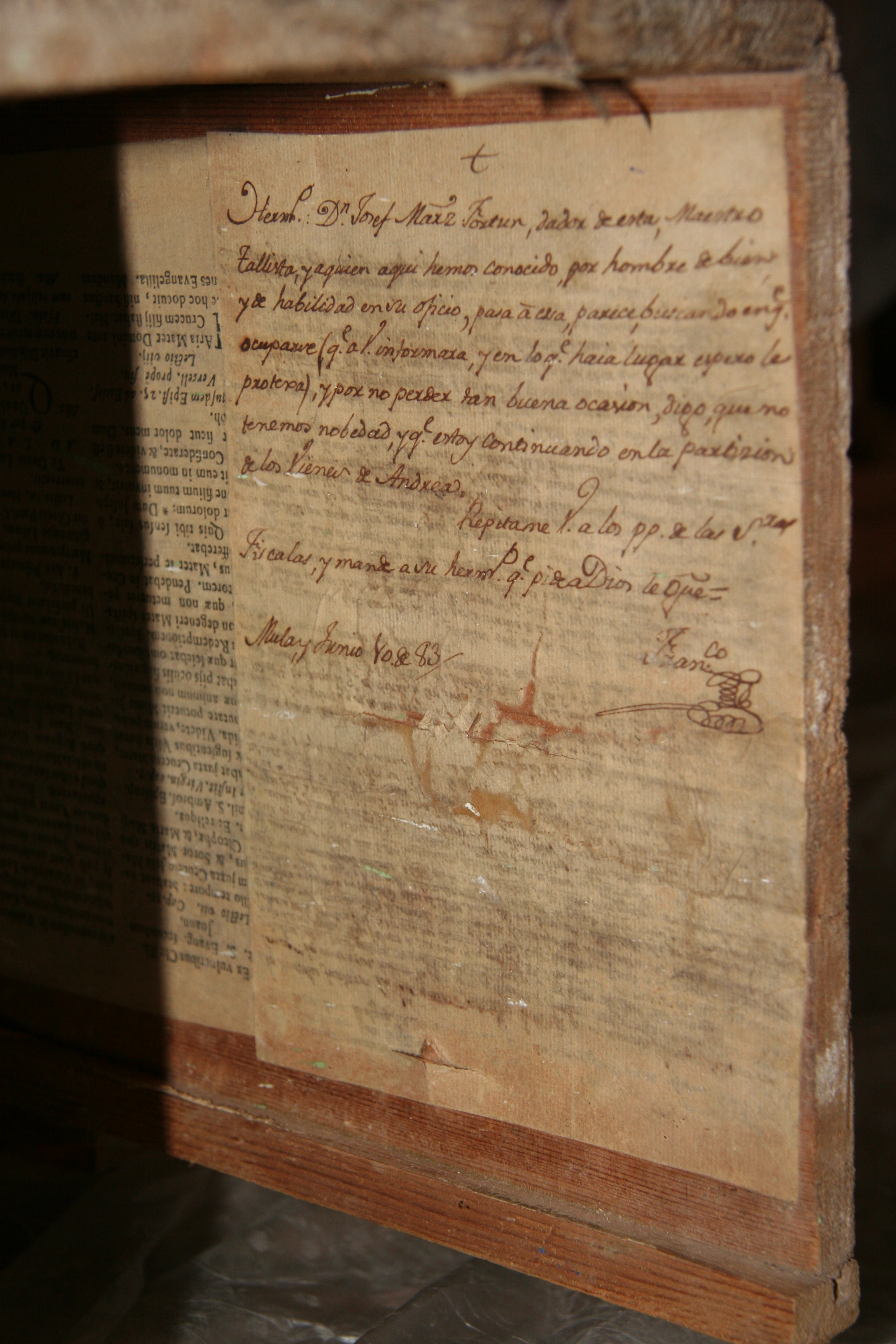 En la caja el tratamiento consistió fundamentalmente en la limpieza general, la desinsectación, la consolidación de la madera, el relleno de grietas y la fijación de elementos sueltos. El frontón triangular se afianzó y se restauraron las etiquetas de los tiradores. En los tubos y cajas de resonancia aparecieron adheridos hojas de libros musicales manuscritos e impresos, colocadas en intervenciones anteriores, para sellar y reforzar los ensambles de las maderas. Todo este material se decidió conservarlo. Durante el proceso de restauración también aparecieron en los muros, tras el órgano, pinturas murales decorativas, que son las únicas originales que se conservan en la iglesia. Estas pinturas se limpiaron y consolidaron.
