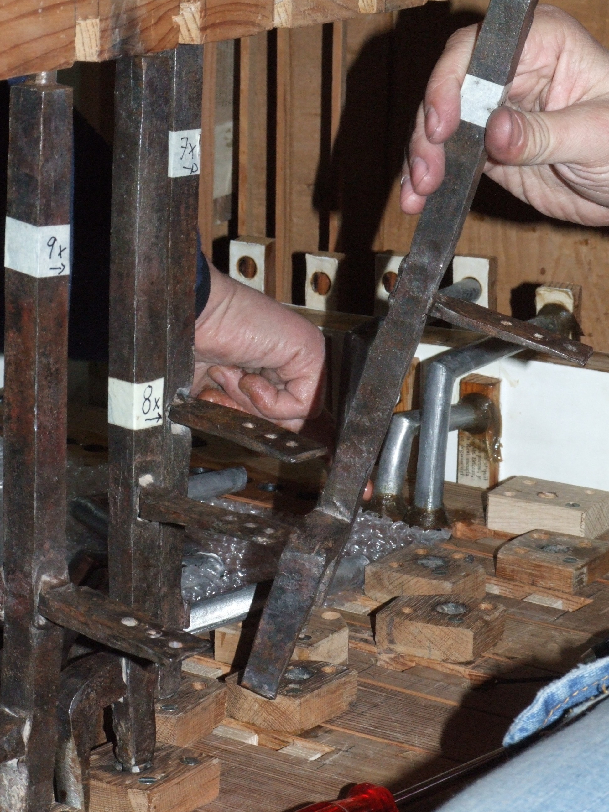 En la mecánica y tubería del órgano los daños más graves eran los numerosos escapes y traspasos de los secretos, las fugas de los fuelles, los desajustes y dureza de la mecánica, y la ahogada y fatigada armonización. En 1983 fue objeto de una intervención realizada por Enrique Morentín, que tuvo un carácter funcional más que de restauración. La cañutería fue una de las partes más modificada del instrumento. Aunque conservaba un gran número de tubos originales, en la actuación de 1983 se incorporaron tubos nuevos y tubos antiguos procedentes de otros órganos. A todo ello se sumaba la existencia de una gran cantidad de grietas, abolladuras y agujeros.