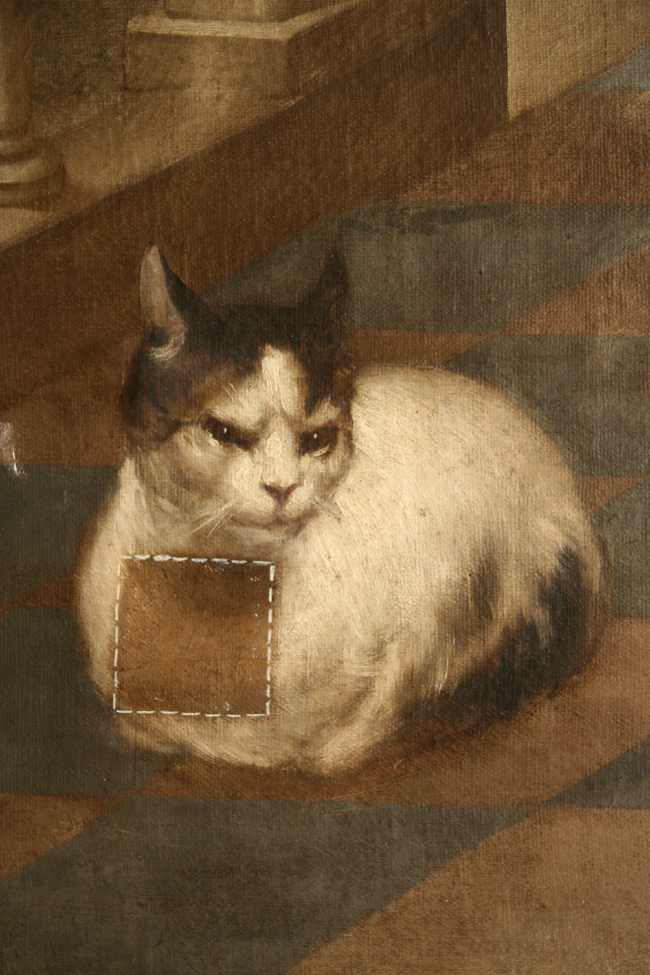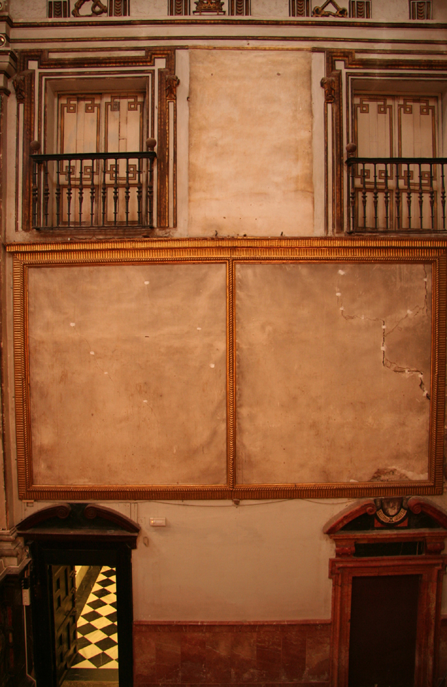 En cuanto a la serie de lienzos de la vida de san Ignacio de Loyola situados en los laterales del presbiterio, estos presentaban un deficiente estado, destensados y oscurecidos. Los cuatro lienzos de gran formato de la parte inferior estaban directamente clavados al muro. Su posición bajo dos balcones en contacto directo con los marcos, había contribuido en gran medida a su deterioro.