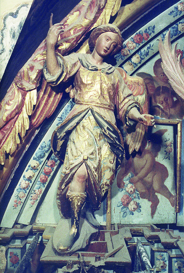 El retablo se encontraba en un estado preocupante. Hasta tal punto, que, como consecuencia de la rotura de uno de los anclajes, se había producido el despegue y vuelco de parte del ático e incluso había llegado a desprenderse y caer un fragmento decorativo de un tamaño considerable.