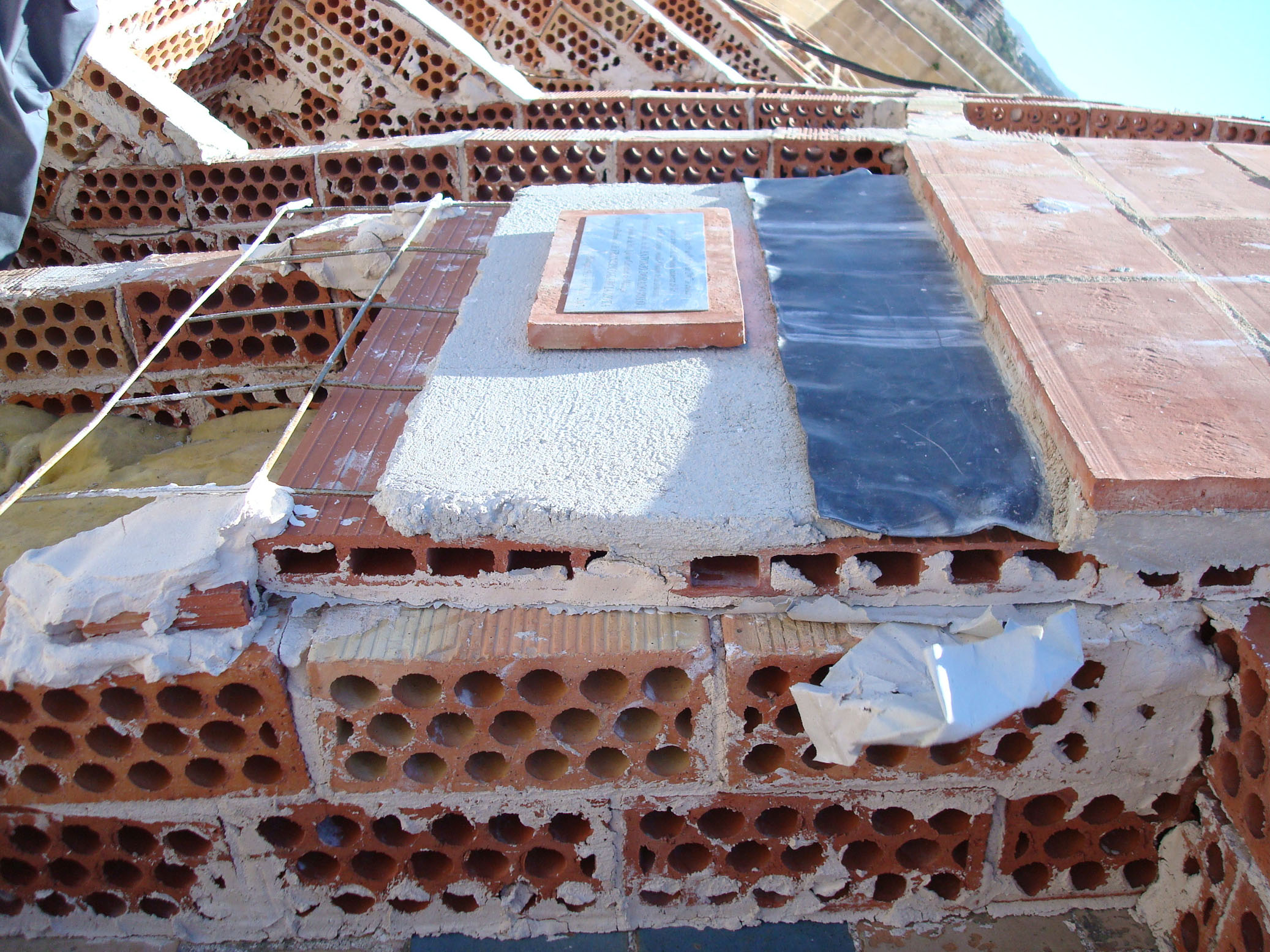 3º. Sobre las maestras y tiras de papel Kraft se apoya una hoja de rasillón de ladrillo.