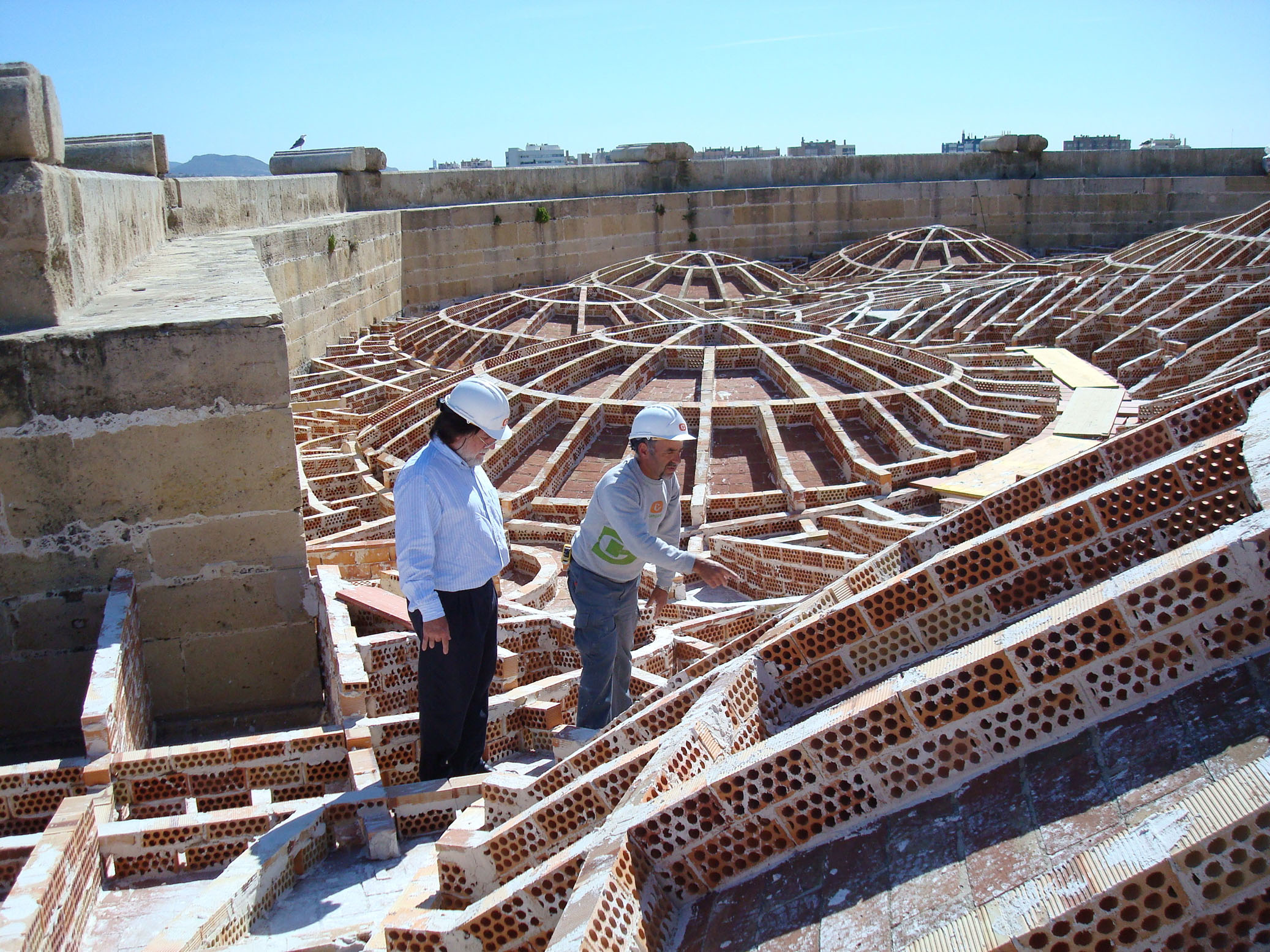 1º. Construcción de citaras de apoyo, dispuestas radialmente sobre las bóvedas y de arriostramiento a menos de entre ejes.