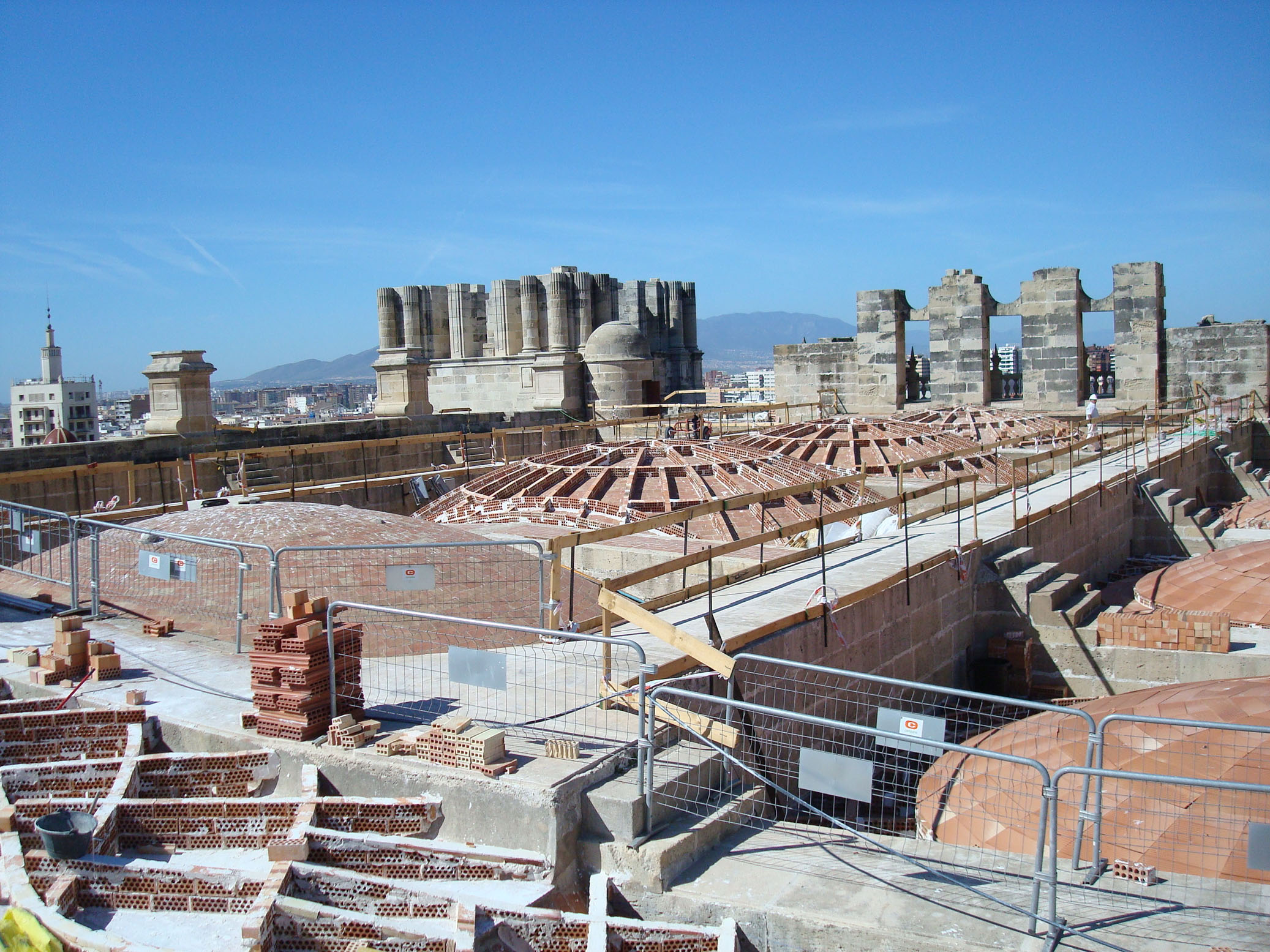 La cubierta que debiera proteger la Catedral de Málaga presenta las deficiencias propias de una obra inacabada. Las fábricas de piedra que componen las bóvedas y los rellenos de los riñones de las mismas están cubiertos exteriormente por una sola hoja de ladrillo, causante de filtraciones continúas.