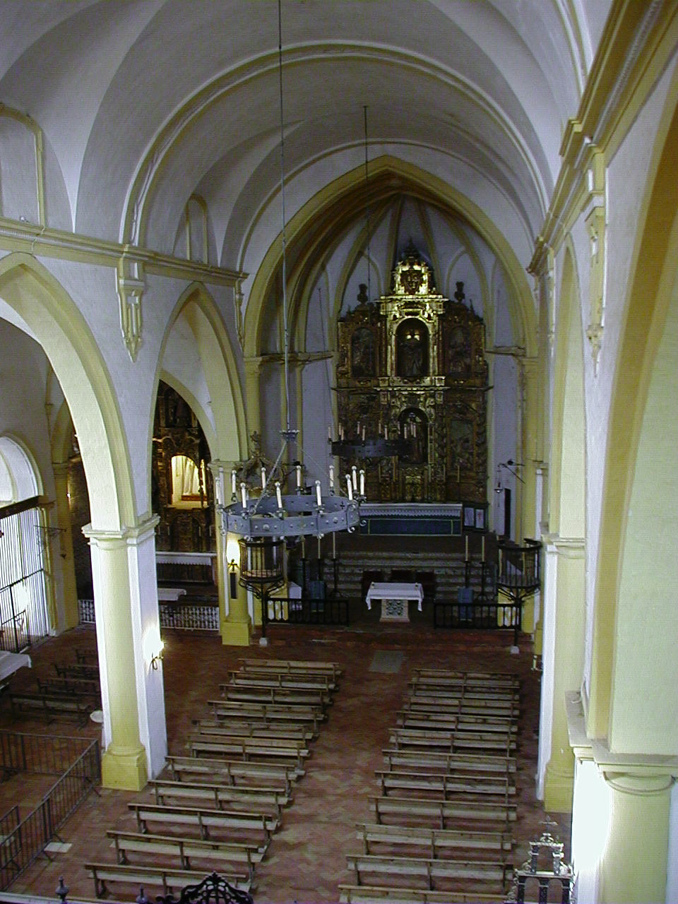 En la separación entre naves tiene cuatro pilares, no habituales, ya que sus frentes más estrechos terminan en medias columnas. Esto se da en otras iglesias de Carmona y la campiña, aunque tampoco faltan antecedentes almohades o probablemente califales.