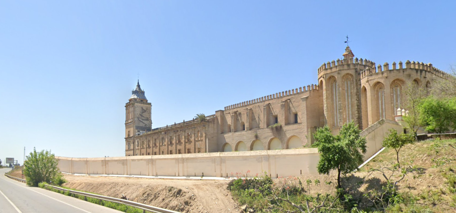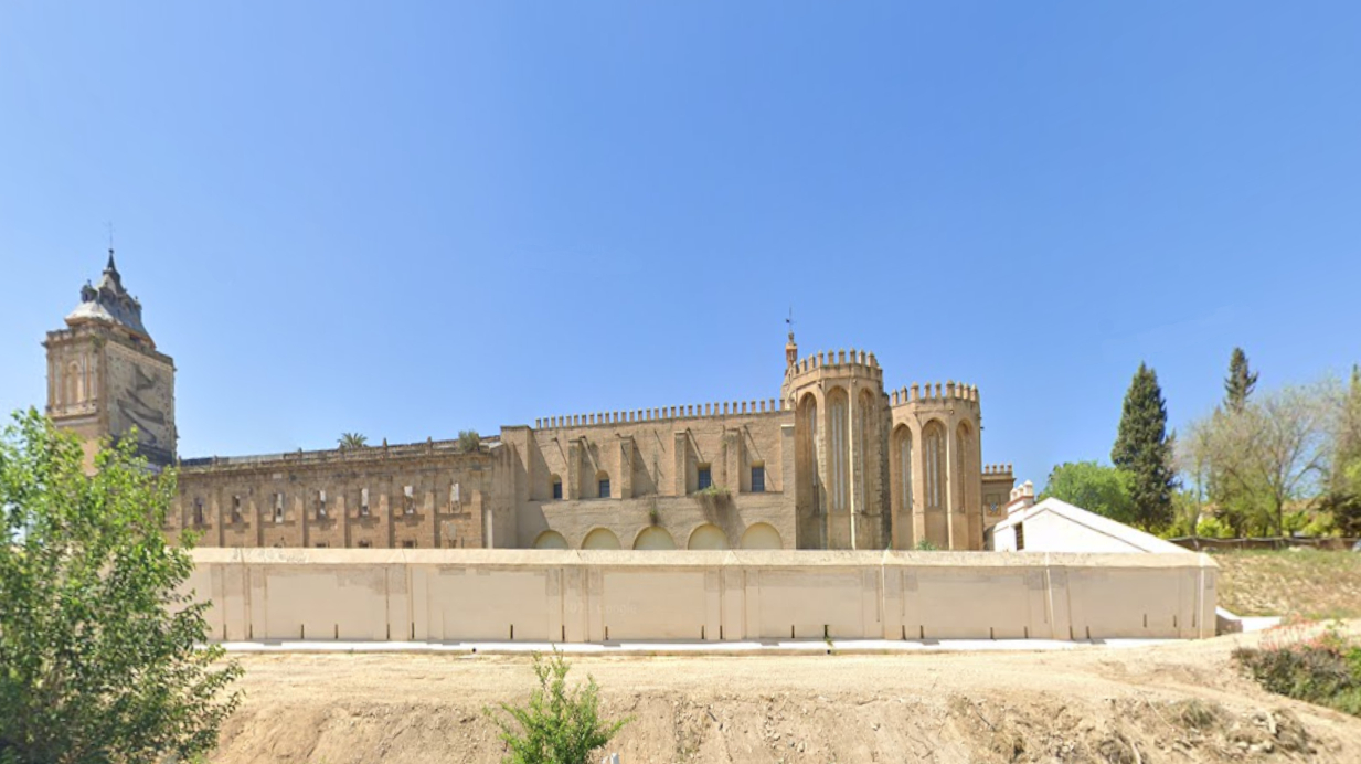 En dicho lado oriental, corriendo al pie de la ladera que desciende desde la cota superior del recinto monacal hacia la inferior de la vega del río Guadalquivir, encontramos dos tipos de cerramiento: