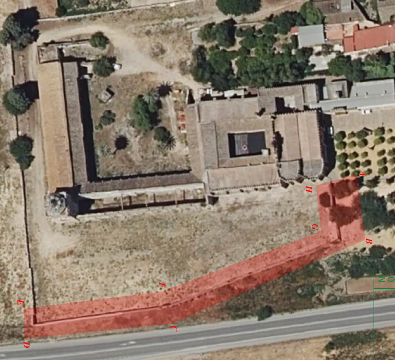 La cerca este, objeto de la intervención, se encuentra en el límite oriental del conjunto monacal, que está delimitado por un conjunto diverso de cerramientos.