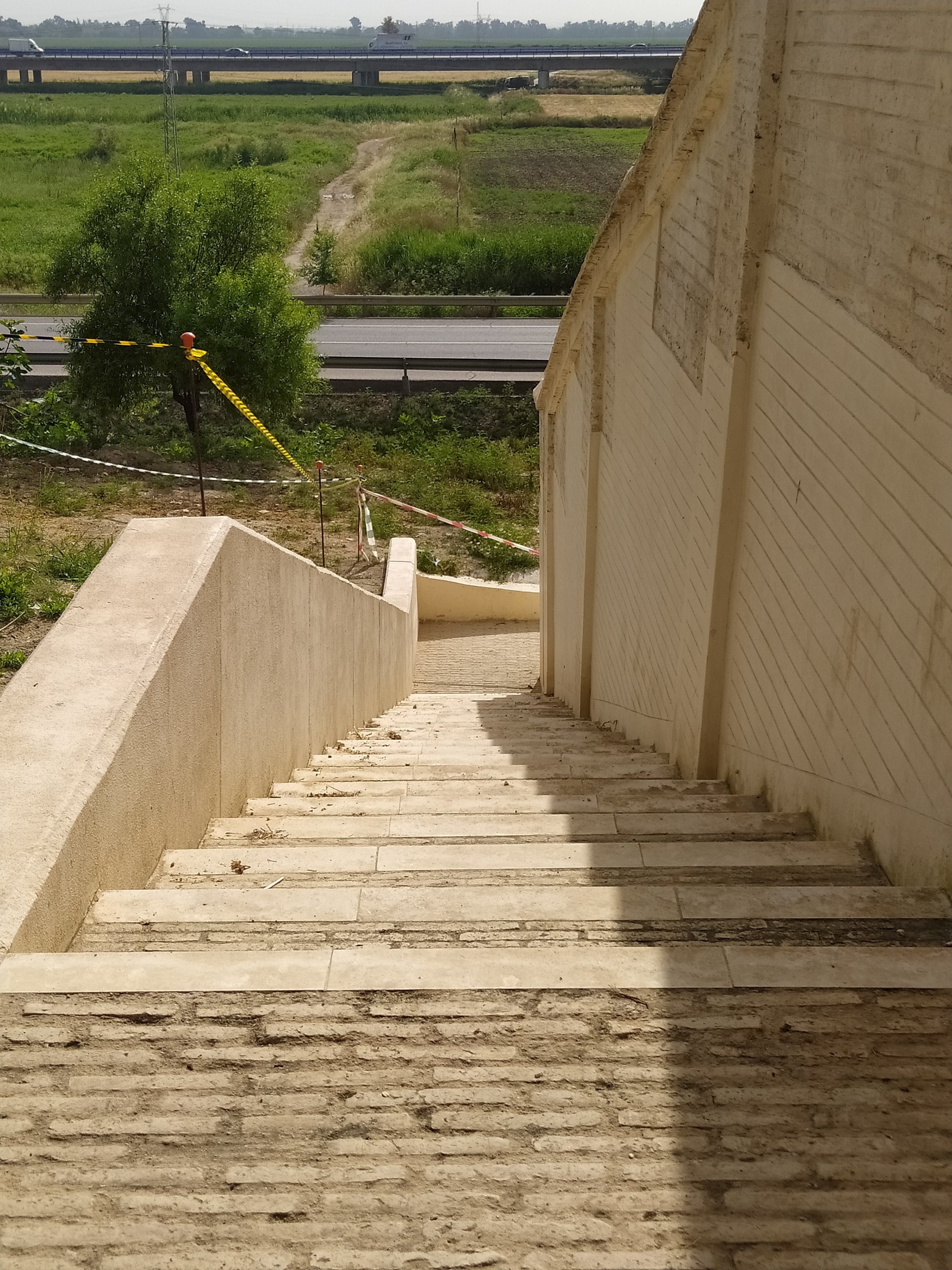Actualmente, el muro de la cerca corre paralelo a la carretera N-630, para cuya construcción fue necesario derribar un tramo de la tapia primitiva sustituyéndose esta por un muro de hormigón. El trazado de esta carretera coincide en gran medida con el de la antigua calzada romana que unía Híspalis e Itálica con Emérita Augusta, Legio Séptima Gemina (León) y Asturias, la conocida como Vía de la Plata, que en la edad media sirve de base al camino mozárabe que desde la baja Andalucía llega a Santiago de Compostela.