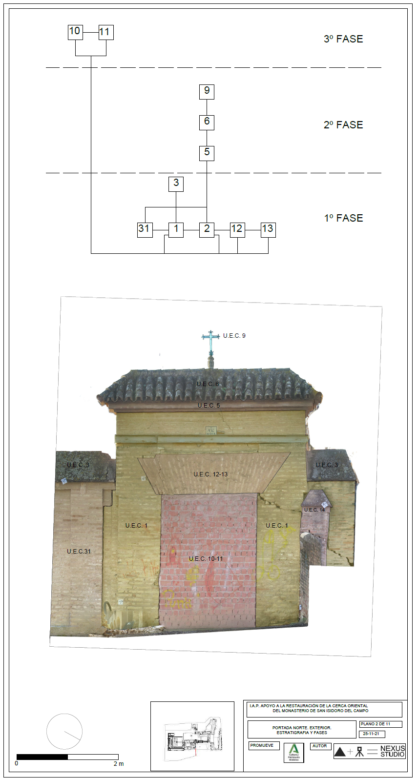 La presente actuación ha estado centrada en la restauración y consolidación de la cerca histórica del Monasterio de San Isidoro, ubicada en el límite oriental y meridional del conjunto monacal.