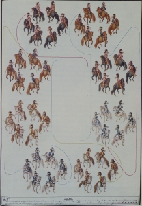 Si el juego de cañas y escaramuzas simulaba cierto género de pelea entre jinetes a caballo acometiendo unas veces y otras huyendo, como si se tratara de un verdadero ataque de los moros al que sólo los caballeros estaban preparados para responder, con esta nueva propuesta se iba perdiendo el ejercicio de ataque ya que al dar una carrera desde un puesto libremente atravesaban la plaza a todo correr y tras tirar sus cañas permanecían en el puesto con aquellos a quienes se las tiraron, sin volver al lugar de donde salieron buscando a sus compañeros para que les defiendan, pues “no hay cristiano que llegue donde están los moros les tirasus lanzas y se queda con ellos, sino que se vuelve al lugar de donde salió con sus compañeros que son los que lo tienen que socorrer”. Es necesario que los integrantes de un puesto sean todos amigos para ayudarse, porque los que entran a tirar en la delantera han de ser socorridos de los que vienen detrás de ellos.