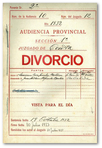 El primer divorcio: expedientes de divorcio en la Audiencia Provincial de Cádiz (1932)