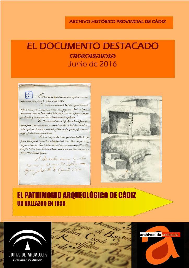 El documento de este mes lleva por título "El patrimonio arqueológico de la provincia de Cádiz: un hallazgo en 1838".