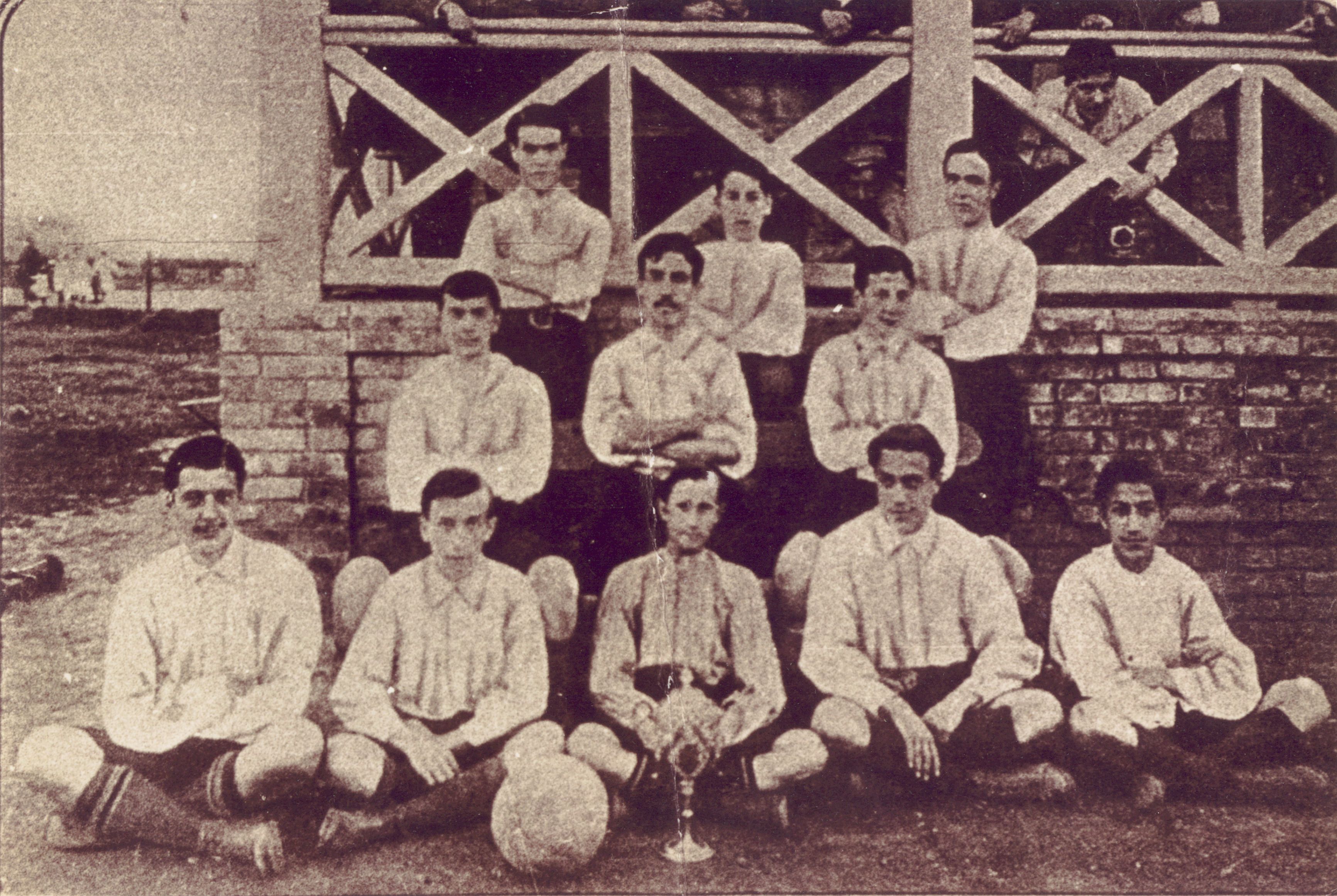 Primer equipo del Real Club Recreativo, que ganó la copa del “Seamens Institute” jugando con una selección inglesa (Reproducción). Sin fecha. AHPH. Fototeca del Diario Odiel.
