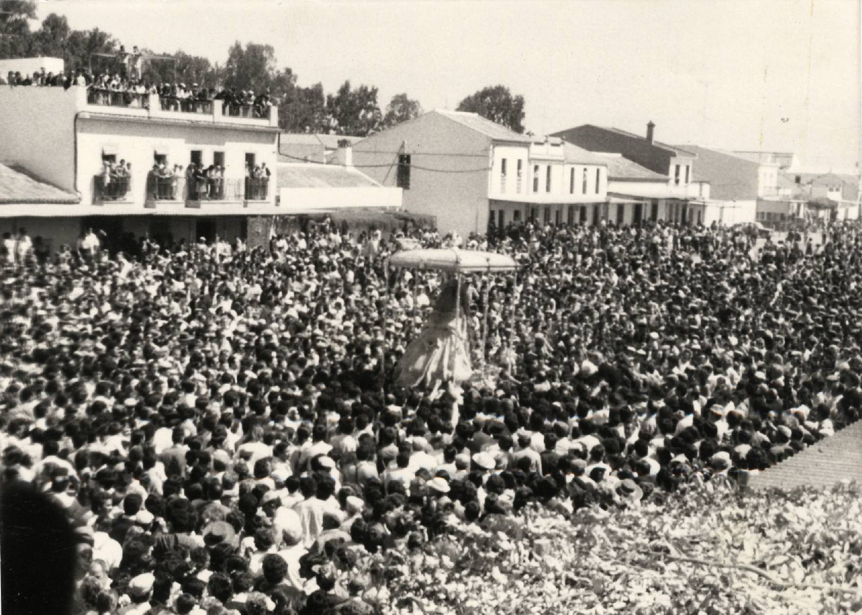 | Procesión de la Virgen de El Rocío.El Rocío (Almonte-Huelva). Sin fecha. AHPH. Colección fotográfica del Diario Odiel. Signatura F-135/0014. |