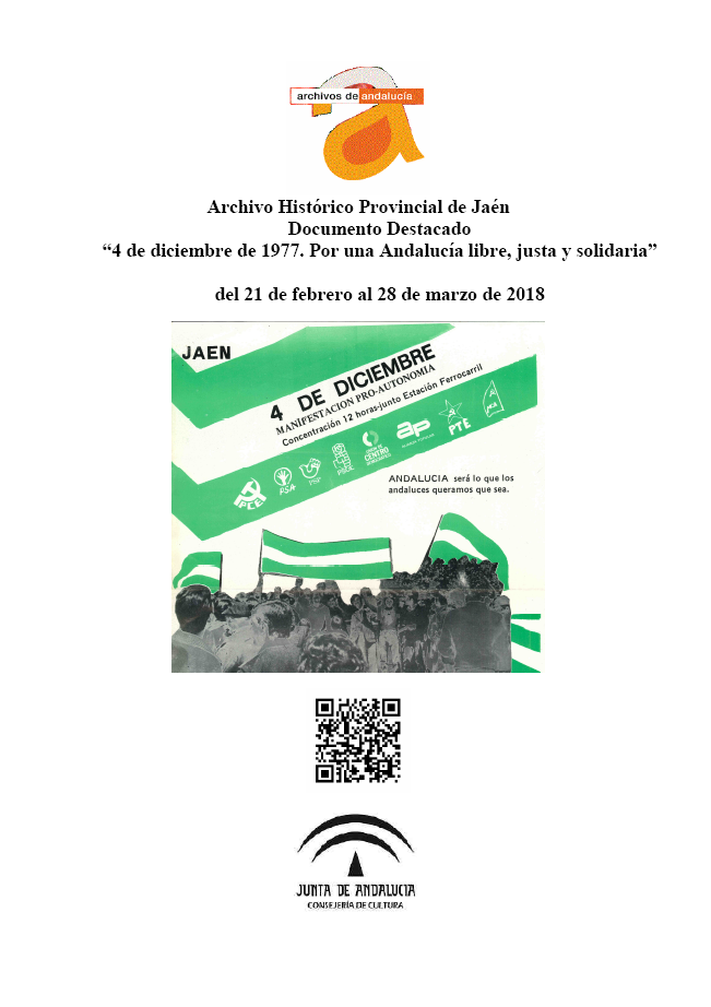 En esta ocasión, hemos querido destacar los hechos que se produjeron en torno al 4 de diciembre de 1977, es decir, la manifestación que se convocó en toda Andalucía para reclamar la autonomía para Andalucía, mostrando una selección de documentos procedentes del Gobierno Civil relacionados con la autorización de la manifestación Pro-Autonomía que se celebró el mismo día 4 de diciembre en Jaén, así como las muestras de apoyo que las instituciones hicieron a esa manifestación como parte de los actos de celebración del “Día de Andalucía”.